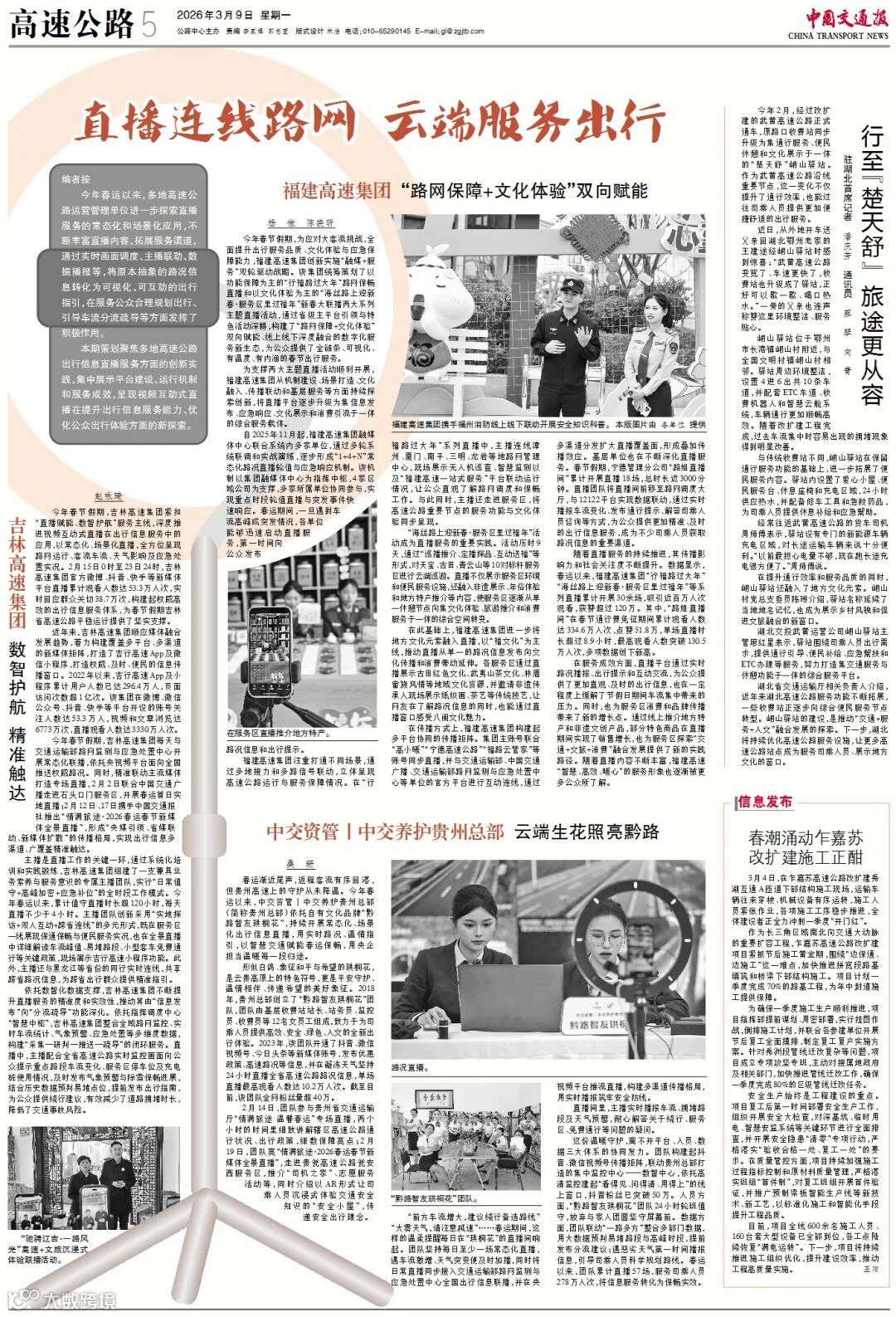 近日,公司一线员工的奋斗故事与创新实践获得主流媒体关注:中国交通报将镜头对准贵州总部“黔路智友珙桐花”团队,记录她们借力直播手段发布实时路况,以智慧交通赋能春运保通保畅的生动实践。新疆日报则聚焦乌尉高速公路运营一线,点赞一朵朵“铿锵玫瑰”以坚守诠释担当、用奉献书写芳华;她们坚守岗位的身影,是春运大考中最温暖的注脚;她们以奋斗之姿绽放的“她力量”,成为冰天雪地中一道亮丽的风景线,充分展现了公司在服务民生、保障出行中的责任与担当。