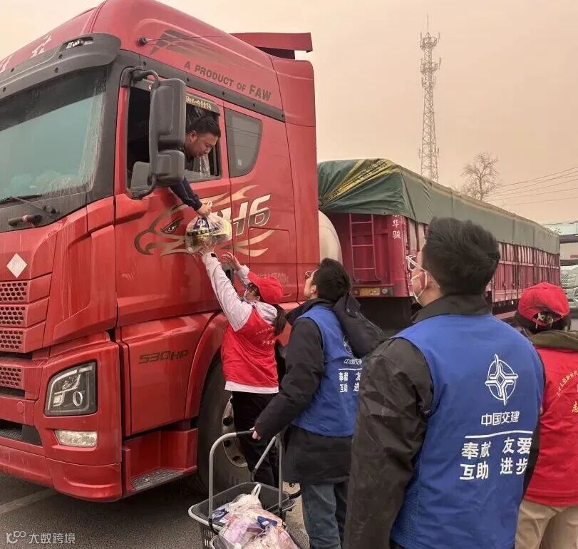 “微笑新疆·情暖旅途”行动,为滞留司乘送上热水、食物