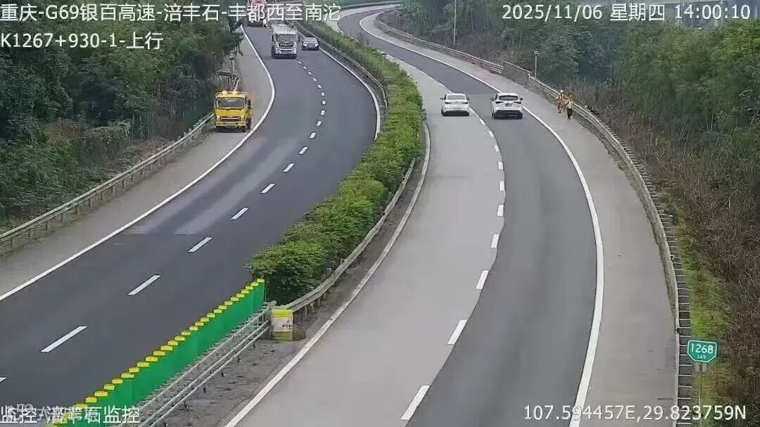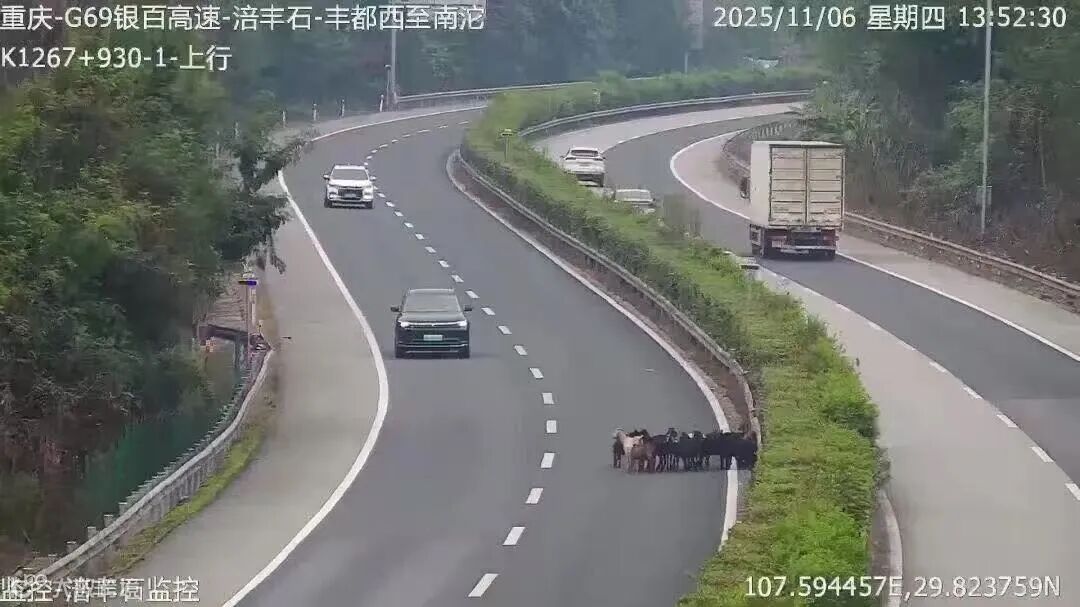 接到交巡警丰都大队通报后,当班监控班组迅速响应,迅速进入“分工协作、高效联动”的工作模式。一人第一时间记录详细信息;一人同步通知养护与路巡人员赶赴现场;一人快速调取K1267及周边路段的实时监控画面。仅用3分钟便精准锁定目标——羊群实际位于K1268路段,数只羊已在超车道“闲庭信步”,导致过往车辆纷纷紧急避让,现场险象环生!