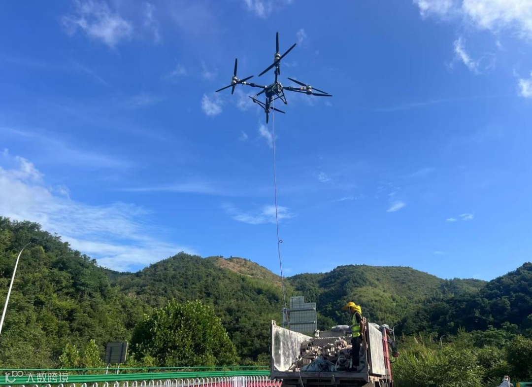 “空中驼队”大显神威:单次运载100斤物料,2分钟完成30分钟人工搬运量,效率提升15倍,运输成本直降50%,彻底规避高陡边坡人工作业风险,高温天气作业“零中暑”。