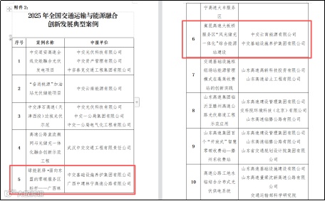 近日,由公司参与策划及设计的《承平高速雾灵山零碳服务区项目》《绿能邕驿・面向东盟的零碳服务区标杆——广西林宁高速大丰服务区》及《嵩昆高速大板桥服务区“风光储充一体化”综合能源站建设》共三个项目,成功入选中国交通运输协会发布的“2025年全国交通运输与能源融合创新发展典型案例”名单,其中承平高速雾灵山零碳服务区被评为优秀案例,这标志着公司在交能融合领域的技术实力与创新成果获得权威认可。