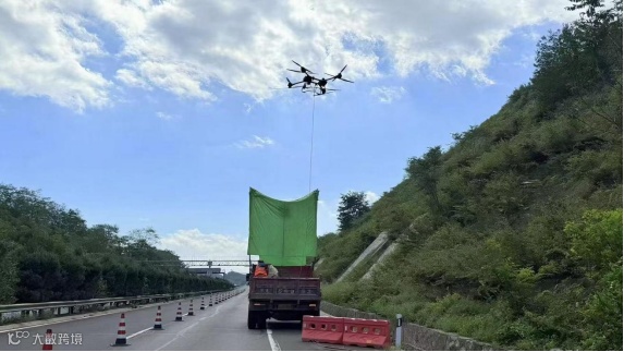 在翼侯高速公路 K166+700 高边坡运养现场,重载无人机的 “空中作业” 彻底改写了传统养护模式。过去,工人需在近 90 度陡坡上肩挑背扛土石,高温天气下中暑、坠落风险极高,单日转运量不足 20 立方米。如今,民航局认证的重载无人机成为 “空中搬运工”—— 单次吊运 100 斤土石,在 36℃高温与坡面阵风中稳定飞行,精准完成 “坡顶装袋 — 空中运输 — 坡脚投放” 全流程。
