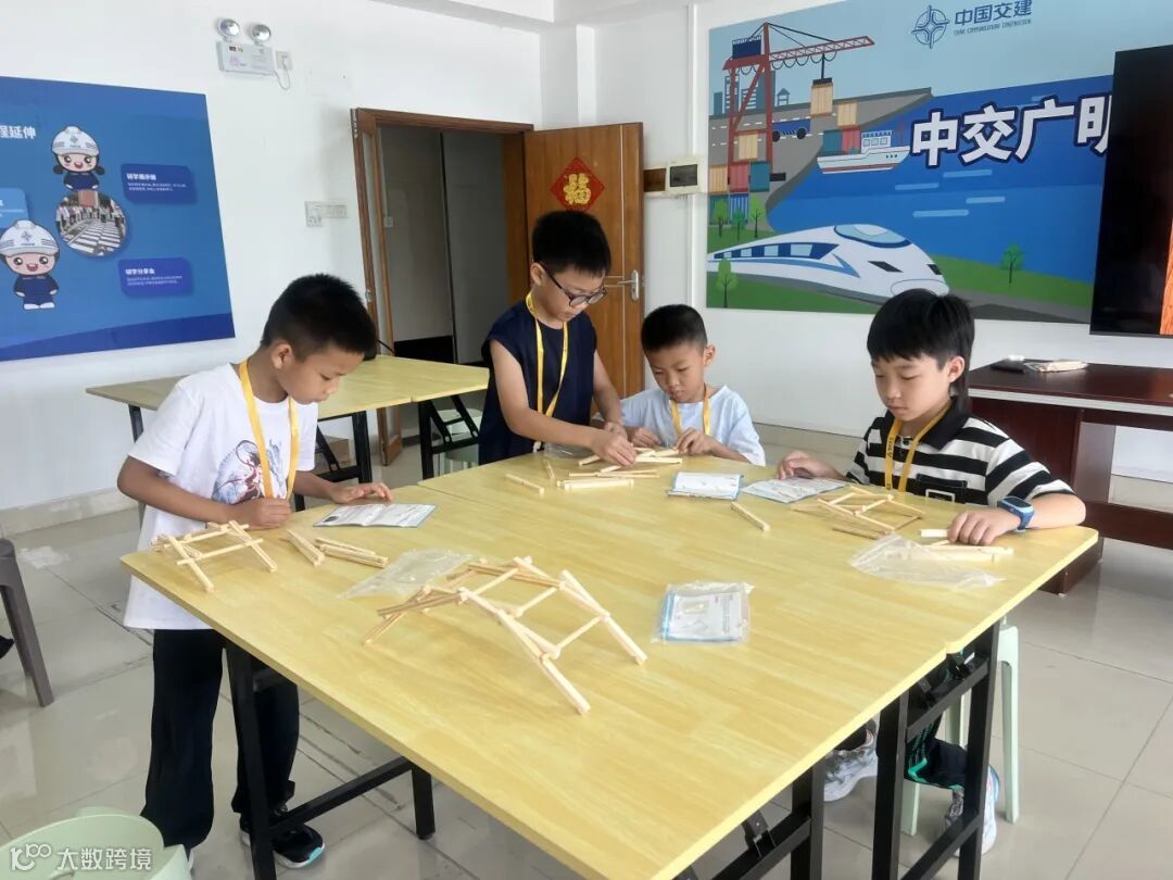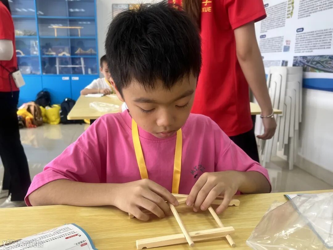 随后,学生们一同探索桥梁“力学魔法”,在实践中感受力学原理的奇妙。当一个个小巧的倍力桥模型完成时,孩子们的脸上都洋溢着满满的成就感。