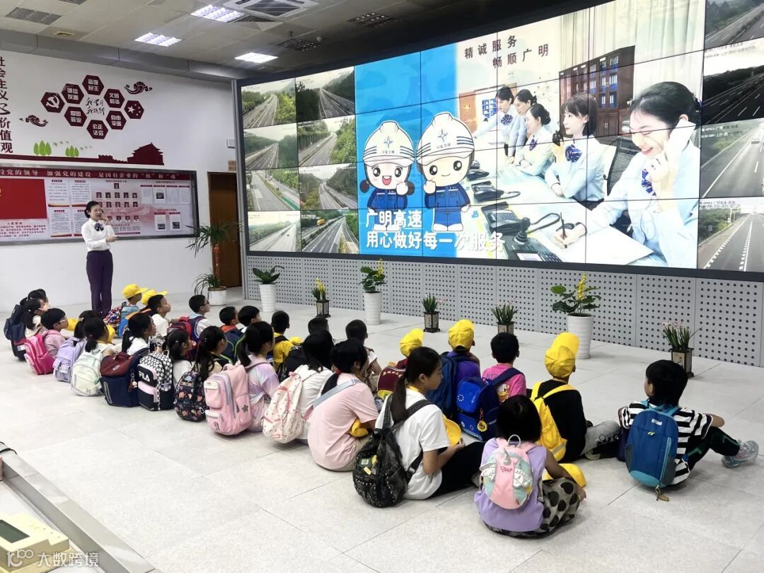近日,中交广明“智慧高速+交通安全”实践教育基地迎来了佛山市高明区杨和镇机关工会干部职工子女夏令营的28名学生,为他们开启了一场融合科技探索与安全学习的研学之旅。在这里,学生们既能近距离接触智慧高速的前沿科技,感受科技为交通出行带来的便捷与变革,又能在丰富的实操活动中深入学习交通安全知识,筑牢安全出行防线。