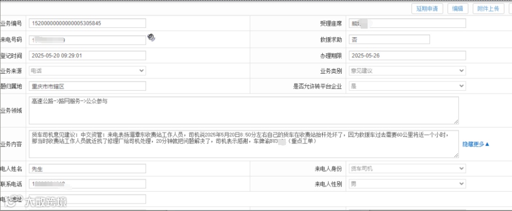 本以为这只是工作中一个小小的插曲,然而3天后,收费站收到了一份来自12328的表扬工单。工单中,司机来电描述了当天的经历,对收费员的热情、专业的服务给予了高度评价。收费站在回访时司机表示,在自己最焦急无助的时候,工作人员的关心和帮助就像黑暗中的一束光,让他感受到了温暖。