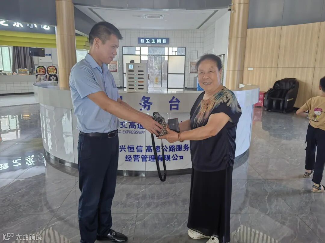 原来郭女士用餐后,郭女士用餐时不慎将手提包遗落在椅背上,当班工作人员清理餐桌时发现并主动上报。由于迟迟未见失主来领,服务区管理人员通过包内仅有身份证、医保卡证件信息,几经辗转,终于联系到正在旅行的郭女士,并协调了返程领取事宜。