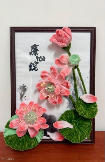 作品以扭扭棒手工荷花为载体,通过立体造型与色彩搭配展现“出淤泥而不染”的意境。花瓣层叠舒展,象征开放包容;根部隐含淤泥元素,与洁净的花瓣形成对比,传递“坚守本心、拒腐崇廉”的深刻寓意。整体设计简洁生动,兼具艺术性与教育性。