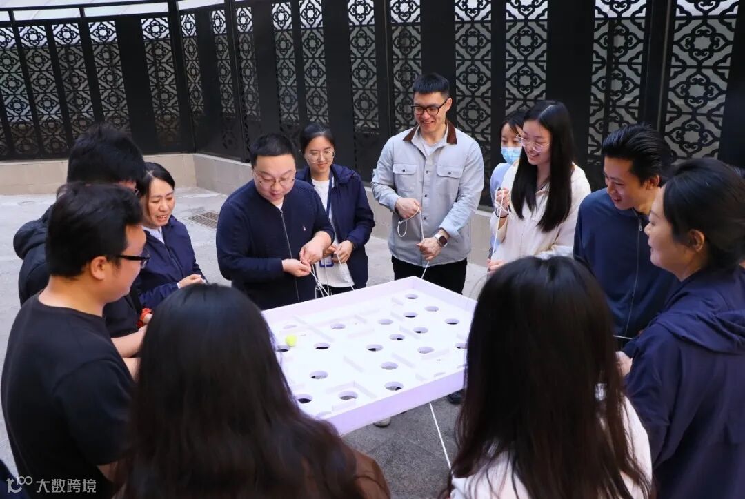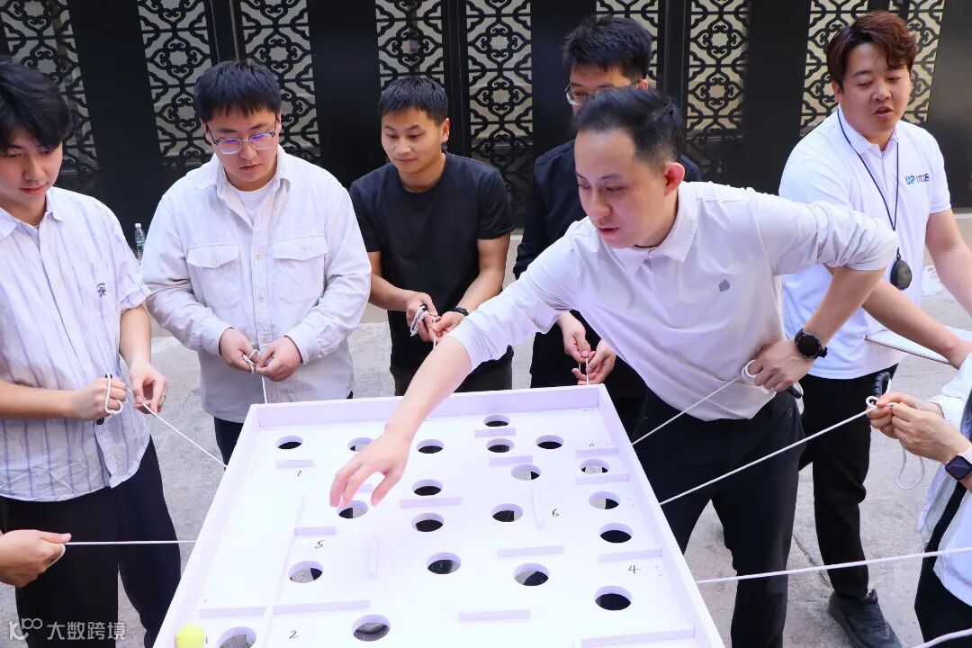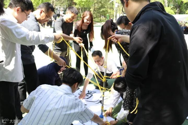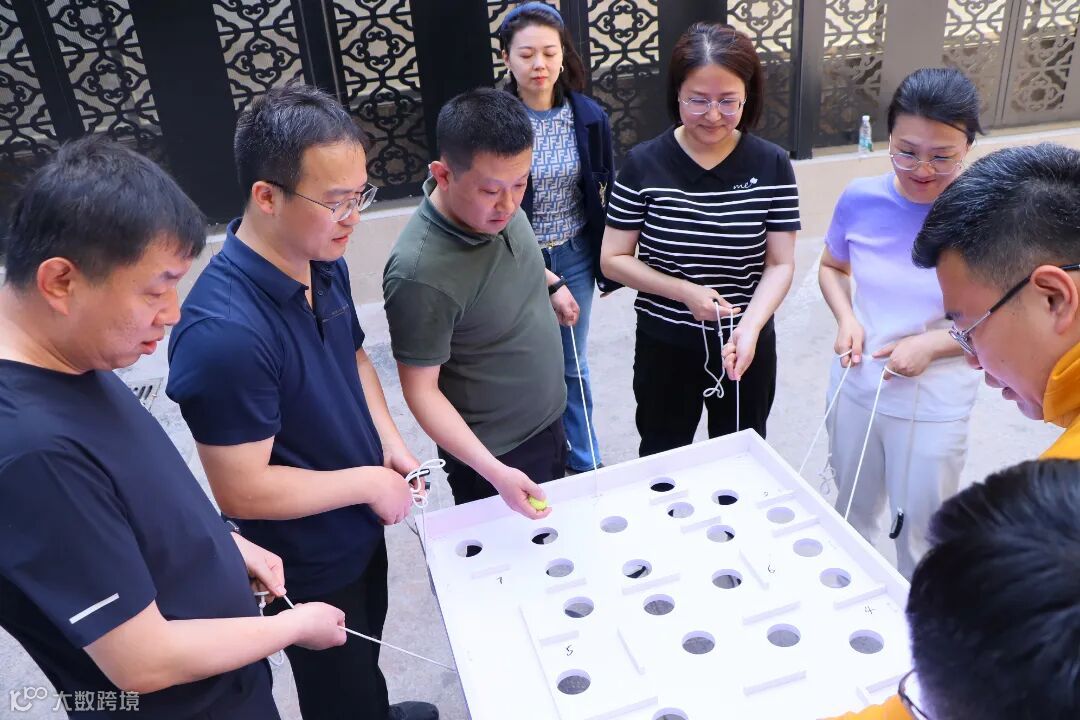 “团队高尔夫”项目随着教练一声令下,绳索在队员手中灵活地调整松紧,圆球沿着预设的路径滚动,即使不幸坠地,也迅速调整状态,重新开始。经过不断地磨合锻炼,大家终于找到默契,一杆进洞!