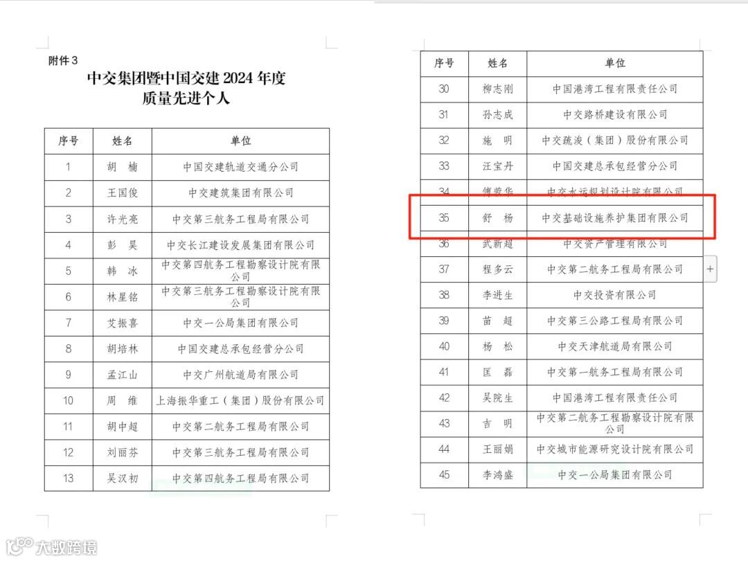 公司荣获中交集团暨中国交建2024年度“质量先进团体”和“质量先进个人”