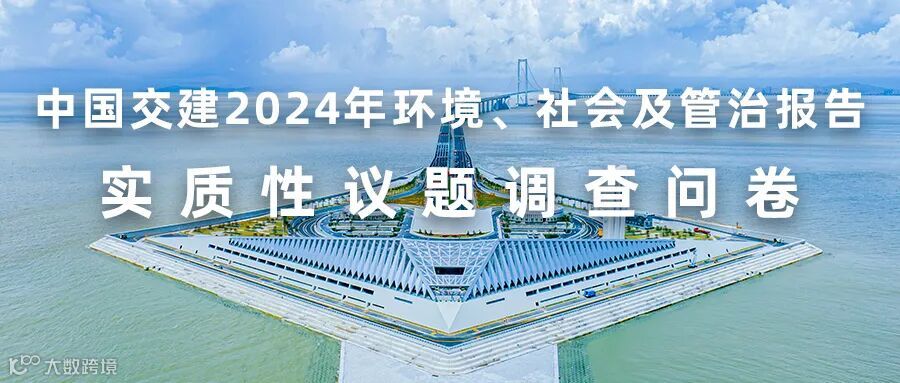 为深入了解利益相关方对中国交建ESG工作的期望和需求,更好地推进公司开展ESG管理与实践,特设置本次ESG实质性议题问卷调查。我们诚挚地邀请您1月10日前参与调查,调查结果将用于指导《中国交建2024年环境、社会及管治报告》的编制及后续工作的开展。同时,本问卷调查结果亦适用于《中交集团2024年社会责任报告》编制。