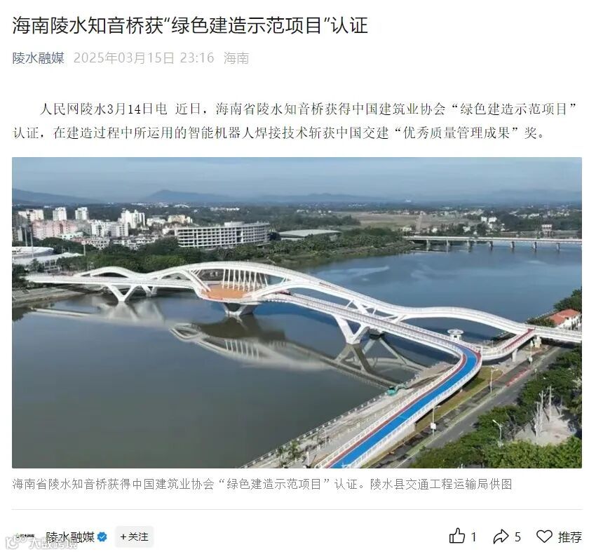陵水知音桥项目,匠心筑桥斩获国家级绿色认证,大桥建设背后的故事引发