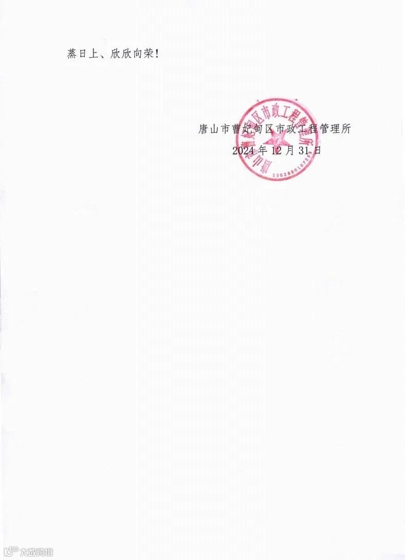 近日,唐山市曹妃甸区市政工程管理所发来表扬信,信中对曹妃甸区道桥智慧管养系统平台项目团队的出色表现给予充分肯定,对公司展示的专业实力和央企担当给予高度赞誉。