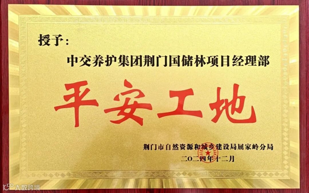 近日,荆门市国储林项目荣获由荆门市自然资源和城乡建设局屈家岭分局颁发的2024年“护林防火先进集体”和“平安工地”称号。