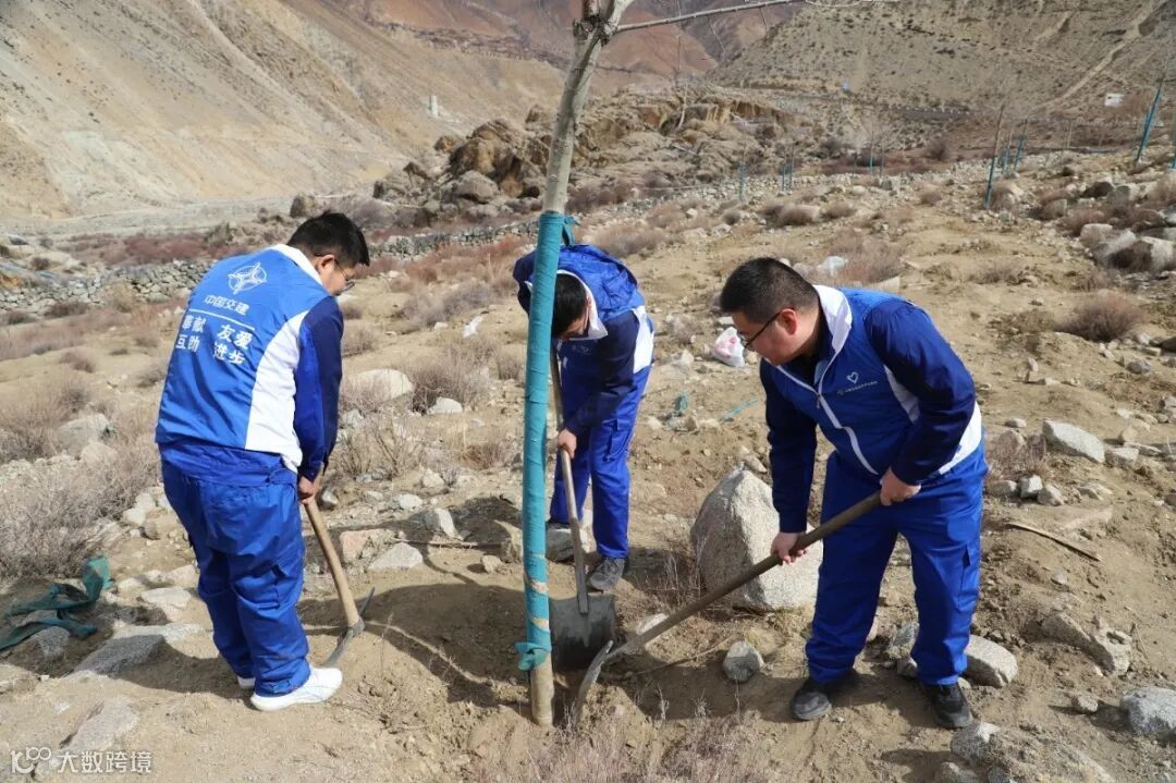 雪域高原上,川藏公路G318线灾害整治项目的蓝马甲志愿者,以植树行动响应“绿水青山就是金山银山”的号召。4名志愿者挥锹铲土、扶苗填坑,在西藏八宿县种下一株株树苗。春风中,新绿与蓝天相映成趣,为荒凉的高原注入勃勃生机。