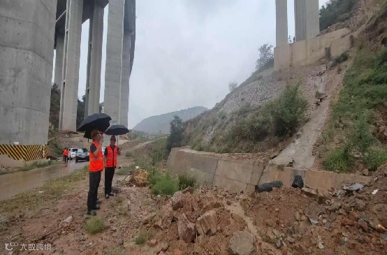 帮扶组在呼北高速K2097+330边坡排查边坡滑塌治理问题。