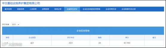近日,交通运输部正式公布了2023年度公路建设市场全国综合信用评价结果,公司凭借卓越的表现,在设计与施工两大板块均获AA级信用评价。这不仅体现了公司在公路建设领域的专业水准和综合实力,也标志着公司在诚信经营、市场行为、社会责任等多个方面均达到了行业领先水平。