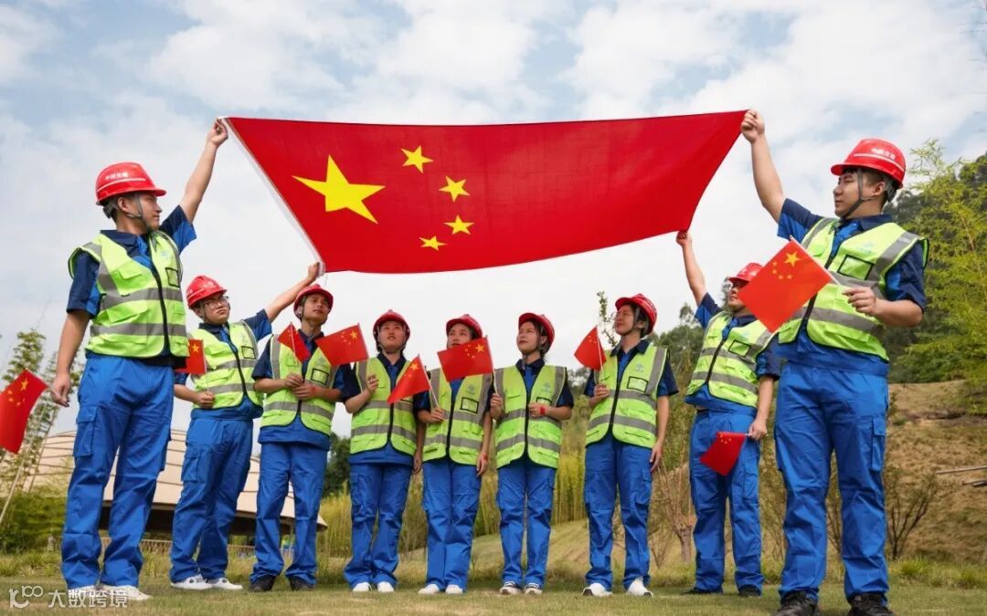 山西养护项目、南宁二环项目、甘农项目与国旗合影,告白祖国:信仰如果有颜色 那一定是中国红