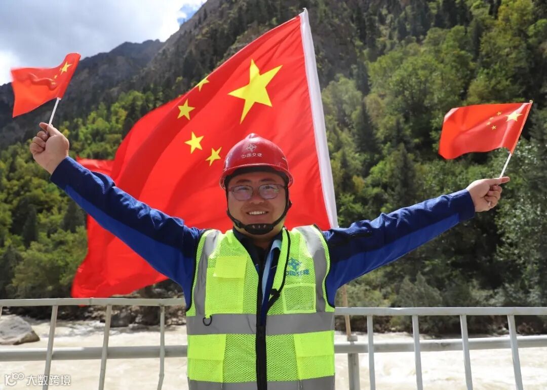 川藏公路G318线灾害整治项目:五星红旗熠熠生辉,我的信仰光芒万丈