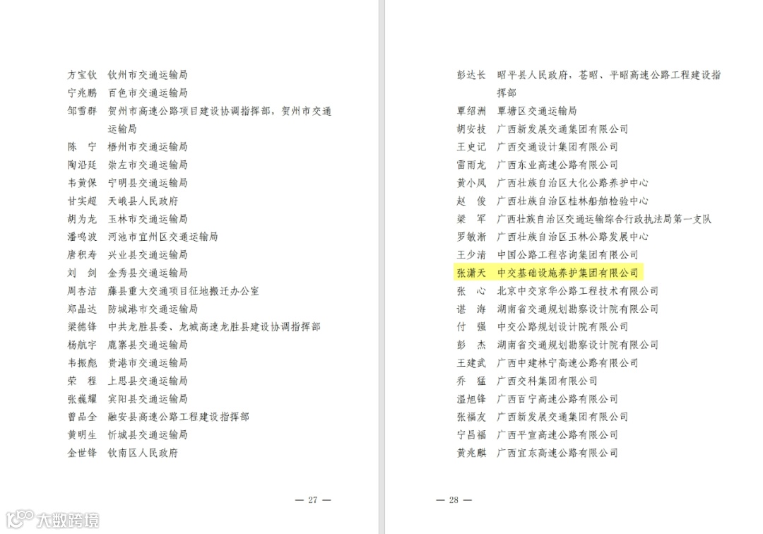 经对2019—2023年广西高速公路规划项目前期工作第二期第2标段龙胜—峒中口岸公路(龙胜至融安段、融安至罗城段、罗城至宜州段)前期工作、第3标段龙胜—峒中口岸公路(宜州至上林段、上林至南宁段)技术咨询服务进行综合考评,评定公司为2023年度先进勘察设计单位。对公司张潇天同志配合自治区交通运输厅参与了29个高速公路项目的技术审查、档案管理、工程建设协调等前期工作,评定该同志为2023年度先进建设者。2024年,公司将坚持稳中求进,扎实推进“高质量发展提升年”活动,深入参与广西高速公路建设,继续组织专业团队全力推进项目生产工作,为广西高速公路建设贡献“中交养护”力量。