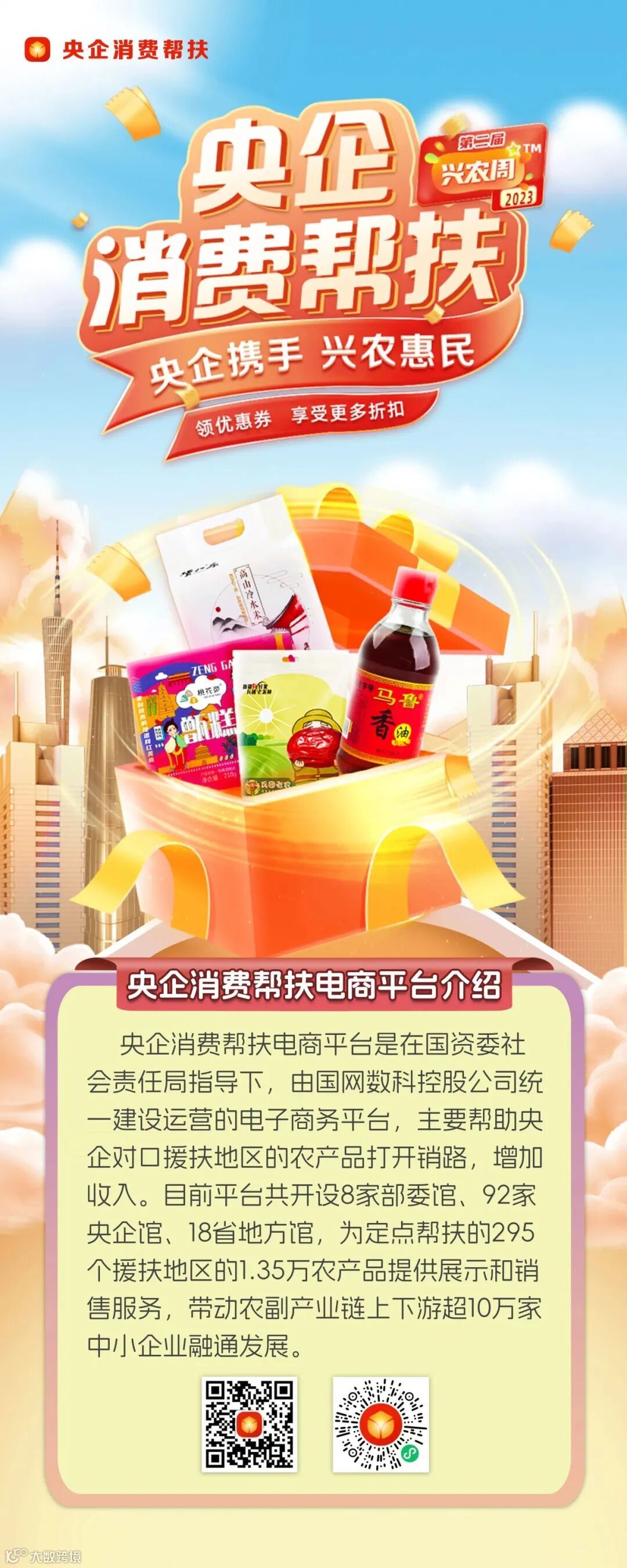 为全面贯彻落实习近平总书记关于“三农”工作的重要论述,充分发挥央企电商平台优势作用,国务院国资委以“央企携手 兴农惠民”为主题,开展第二届“央企消费帮扶兴农周”活动。中交集团积极响应号召,依托央企消费帮扶平台和中交福利平台于9月4日开启预售活动,9月14日至20日正式开展线上采购、兴农周美食节、特色农产品展销推介会、百县百品视频带货等活动,帮销泸水市、福贡县、贡山县、兰坪县、英吉沙县5个定点帮扶县(市)和其他脱贫县的优质农产品,为助农兴农贡献中交力量。
