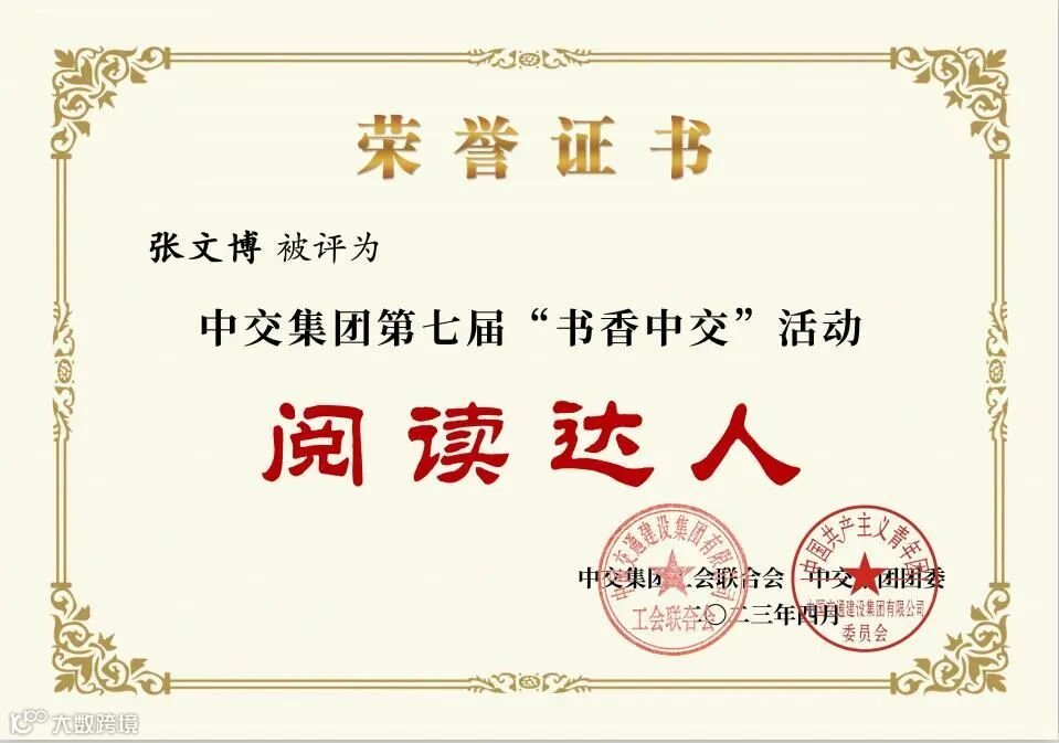 近日,中交集团工会、团委发布了第七届“书香中交”活动先进集体和个人的表彰决定,公司获评集团一个“优秀职工书屋”、一个“活动示范性读书会”、一名职工被评为“阅读达人”。