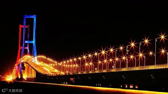 在印度尼西亚东爪哇省东北部的马都拉海峡中,横跨着一座用中国桥梁规范建造的跨海大桥,宛如一条纽带,连接着印尼经济最发达的爪哇岛和资源丰富的马都拉岛。苏拉马都跨海大桥总长5438米,主桥为818米的斜拉桥,桥宽30米,是印度尼西亚第一座跨海大桥和连岛工程,也是东南亚地区同类型桥梁中最大的跨海桥梁。