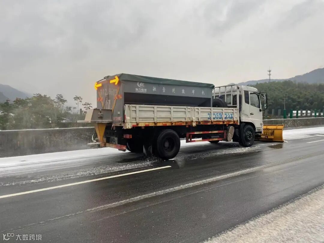 为应对降温下雪天气,武汉四环线项目部立即启动了防滑保畅预案,项目团队全员投入到除雪保畅第一线,提前筹划、沉着应对,做好除雪机械设备和物资准备,现场调试撒布机、融雪剂装车,以确保能够及时预警快速反应、有效处理,将冰雪天气造成的影响降到最低。项目团队昼夜奋战,根据天气情况撒布融雪剂作业,加速积雪融化速度,减少通行影响;加强对道路及桥梁的巡查次数,及时发现潜在的隐患保证来往车辆畅通无阻。雪停之后,将进行铲雪作业。