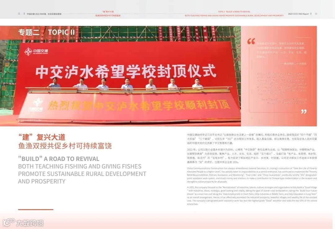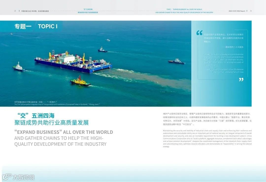 报告充分彰显中国交建围绕建设具有全球竞争力的科技型、管理型、质量型世界一流企业总体目标,努力成为“让出资人放心、客户满意、相关利益方信任、经营者安心、员工幸福、社会赞誉”的受人尊敬企业所做出的不懈努力和取得的斐然成绩。报告整体分为两大责任专题和三个主体篇章,开篇以“交建”为主线,设置“三链协同”和“乡村振兴”两大专题,彰显企业品牌特色;主体部分以“路”串联,深度回应香港联交所、上交所对上市公司ESG及社会责任有关信息披露要求,以及相关利益方对市场、环境、社会、风险等方面的关注,积极践行ESG理念,推进ESG实践,助力自身实现永续经营,基业长青。