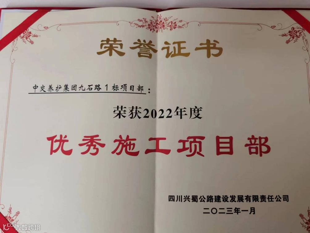 近日,公司国道549线石棉(雅安界)至九龙段改建工程TJ1标段项目部集体和个人获得多项表彰奖励。项目集体获得代建单位2022年度“优秀施工项目部”荣誉称号。项目员工获得代建指挥部2022年度劳动竞赛“先进个人”荣誉称号。