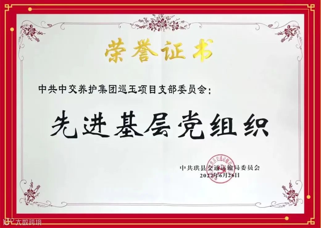 珙县交通运输局党委授予巡玉项目党支部先进基层党组织。