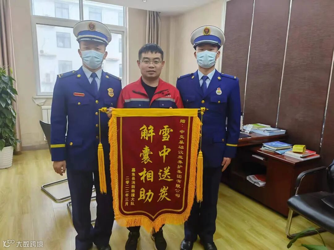 荣获锦旗显赞誉,奉献助人显担当。近日,嘉鱼县消防救援大队向公司嘉鱼项目部赠送了“解囊相助,雪中送炭”的锦旗,以此表达诚挚的谢意。