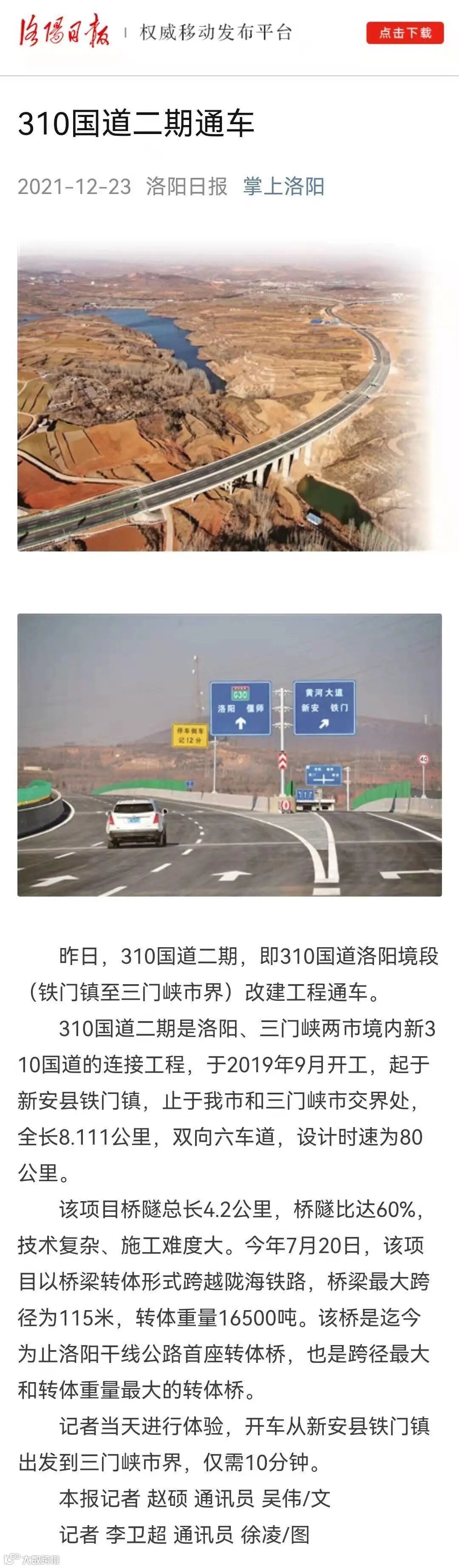 公司国道G310洛阳项目顺利通车,通车的消息引洛阳日报、洛阳网、洛生活、洛阳广电融媒、新安融媒等多家媒体关注报道。