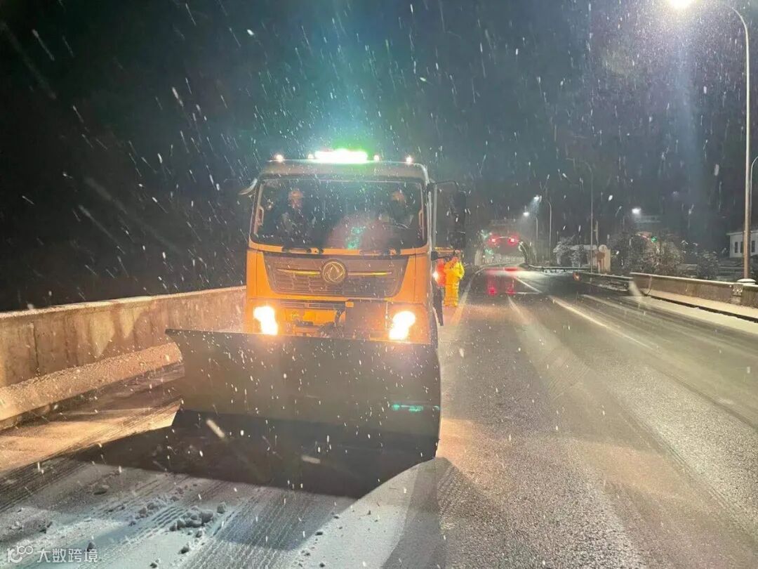 26日夜间,赤壁-通城段突降中雪,项目应急小组立即启动既定应急预案以“保障全线全时间段畅通、雪停路净”为标准,迅速响应、统一调度,保障了过往车辆在冰雪天气的安全通行。降雪期间,项目根据此次降雪特点,重点针对降雪区域的桥梁及隧道出入口进行机械撒布融雪剂,同时在长大桥梁路段加强人工撒布融雪剂,帮助车辆安全通行。