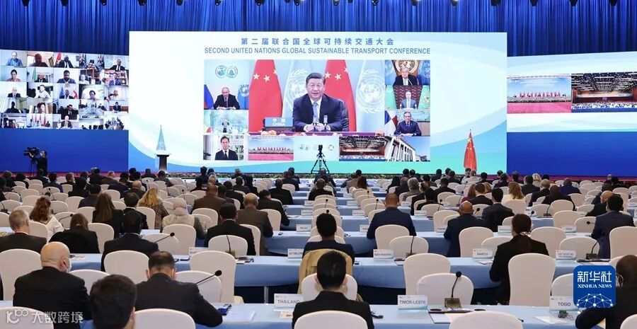 10月14日晚,国家主席习近平以视频方式出席第二届联合国全球可持续交通大会开幕式并发表题为《与世界相交 与时代相通 在可持续发展道路上阔步前行》的主旨讲话。