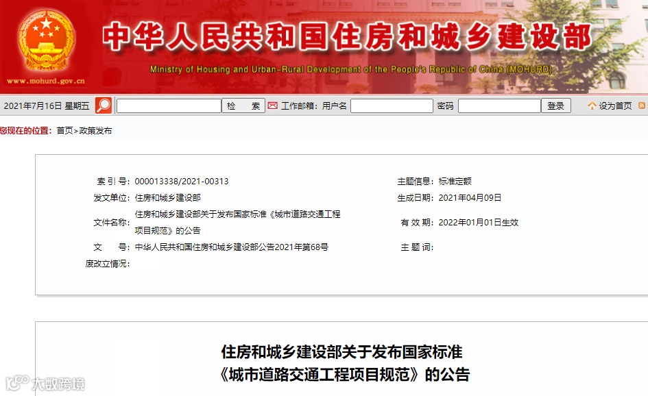 7月15日,住房和城乡建设部正式发布了公司参编的国家标准《城市道路交通工程项目规范》(GB55011-2021)。本规范为全文强制性工程建设规范,全部条文必须严格执行。该标准的发布进一步提升了城市道路交通工程的技术和管理水平,也为公司进军城市业务奠定了坚实的基础。