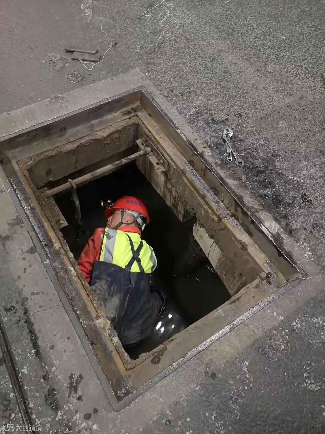 零下8度,项目人员在N线下层江南最低点4号废水泵进行检修