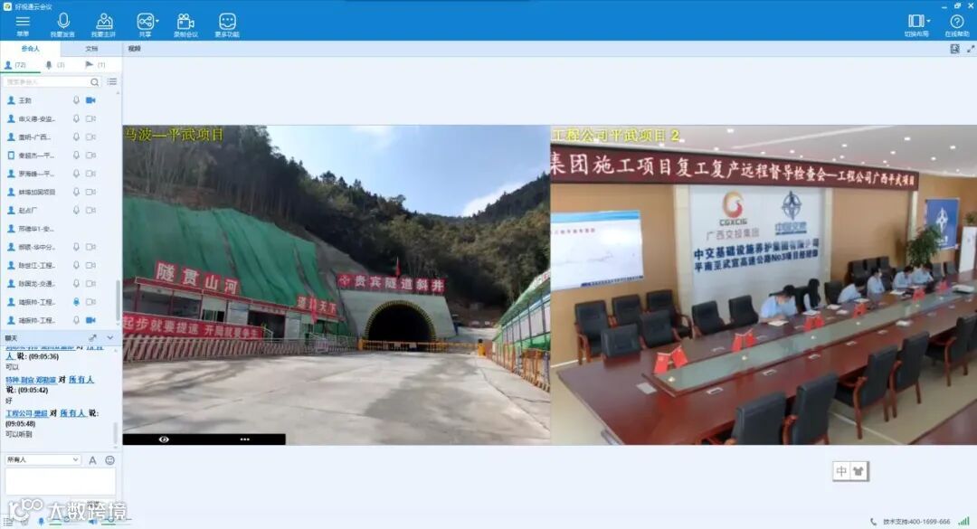 各子分公司主要领导、分管领导及相关部门负责人,在建施工类项目经理及相关人员在视频分会场参加会议。