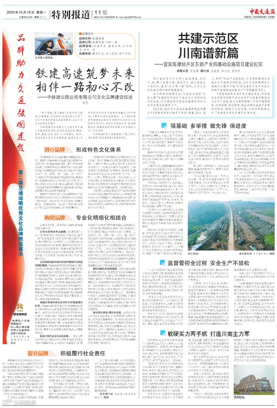 近日,中国交通报特别报道栏目刊登了——共建示范区 川南谱新篇 宜宾临港经开区东部产业园基础设施项目建设纪实,交通建设报2版生产经营栏目刊登了——中交养护牵头组建中国交通运输协会交通基础设施养护分会。