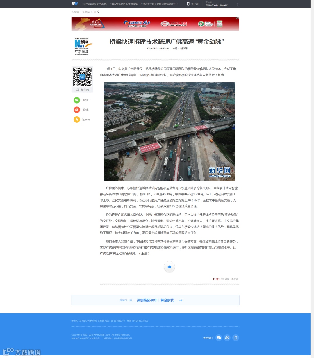 作为国家重点研发计划项目《既有城市桥梁上部结构快速更换成套技术及装备》的科技示范工程,中交养护桥梁快速拆建团队将继续强化科技攻关,完善桥梁快速建造与安装技术方案,尽早实现广佛高速标准8车道双向通行和广佛跨线桥3幅双向通行,为提升区域道路的通行能力与服务水平、让广佛高速“黄金动脉”更畅通贡献应有力量。