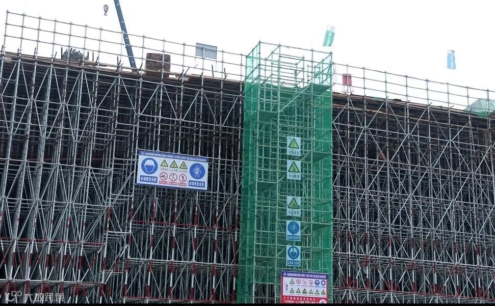 采用盘扣式支架,整体性、稳定性好;跨线门洞按要求设置限高门架、防撞墩、减速带等安全防护措施;工区进出口设置洗车台,以保持施工环境文明整洁;安全爬梯采用整体梯笼,安全可靠;安全围挡、宣传全面到位,安全氛围浓厚。