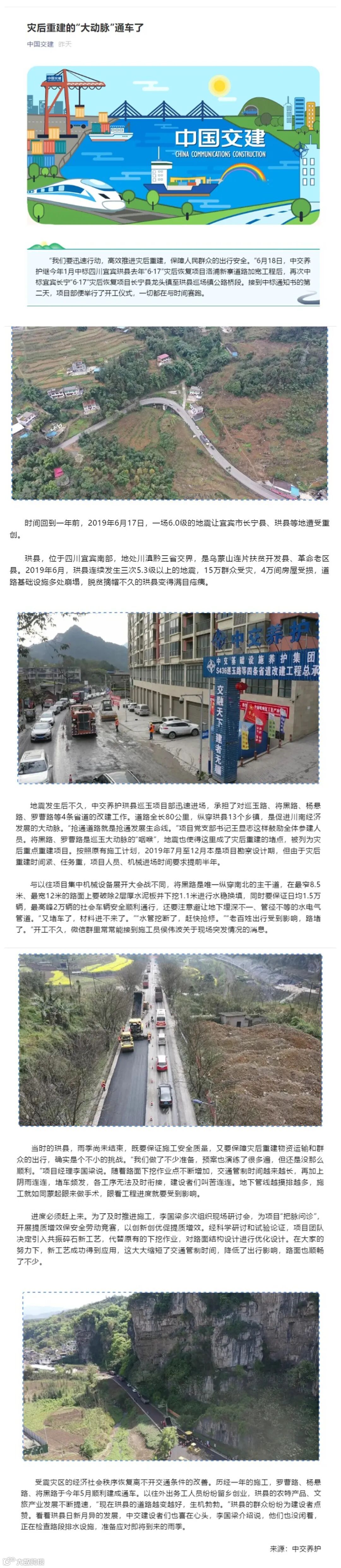 继《交通建设报》对公司承担长宁“6·17”灾后恢复项目进行报道之后,7月20日,“中国交建”微信公众号也报道了公司快和小编一起来看看吧!