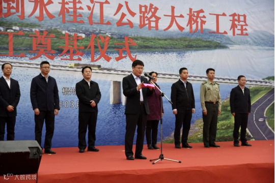 仪式上,孙建勋指出,倒水桂江公路大桥是自治区重点建设工程,更是一项民生工程,关系着桂江两岸社会和经济的发展,意义重大。公司上下必将不负梧州市领导和人民的期望,用中交速度、中交品质,牢记使命担当,建好这座民生桥、民心桥,实现一桥连通两岸,天堑变通途的美好愿景。