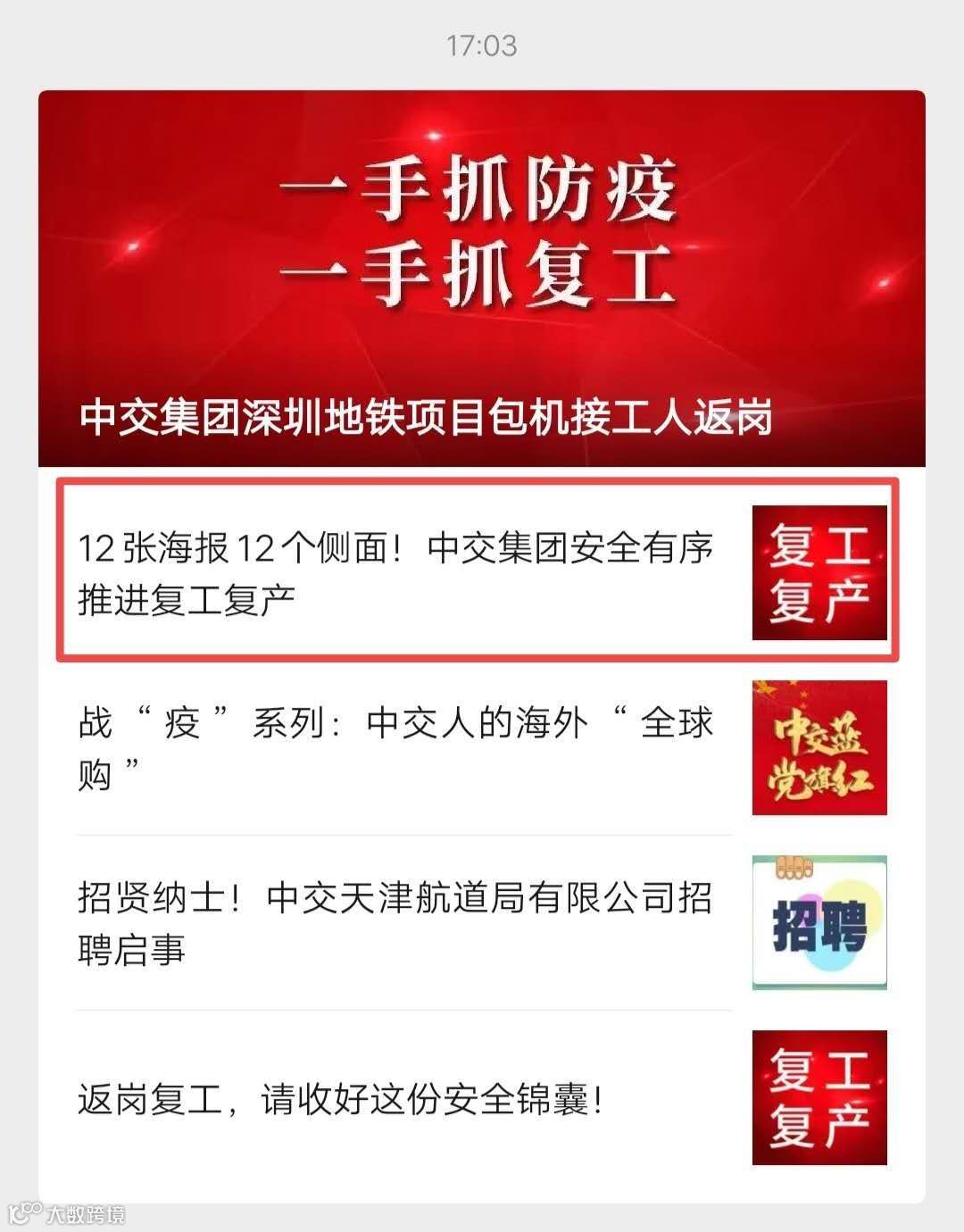 媒体关注|中国交建关注报道公司安全有序推进复工复产