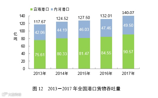 全国港口完成货物吞吐量140.07亿吨,比上年增长6.1%。其中,沿海港口完成90.57亿吨,增长7.1%;内河港口完成49.50亿吨,增长4.3%。