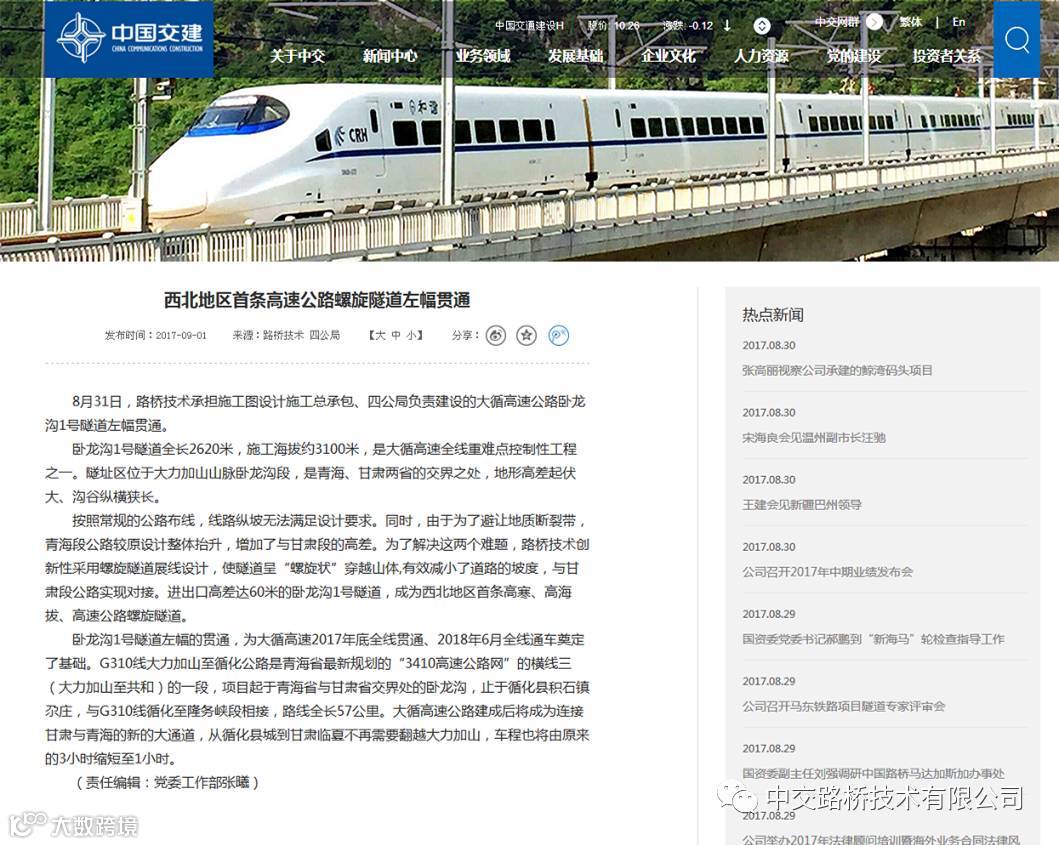 8月31日下午,公司承担施工图设计施工总承包的大循高速公路卧龙沟1号隧道左幅贯通。