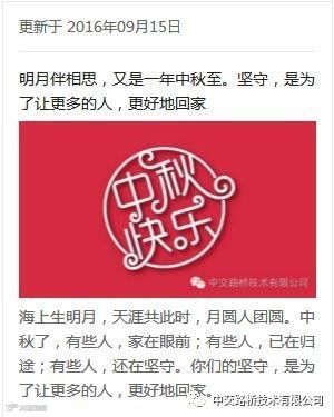 感谢所有为“中交路桥技术有限公司”公众号运营服务的伙伴,这个公众号承载了我们团队创意激荡、笔耕不辍的青春。
