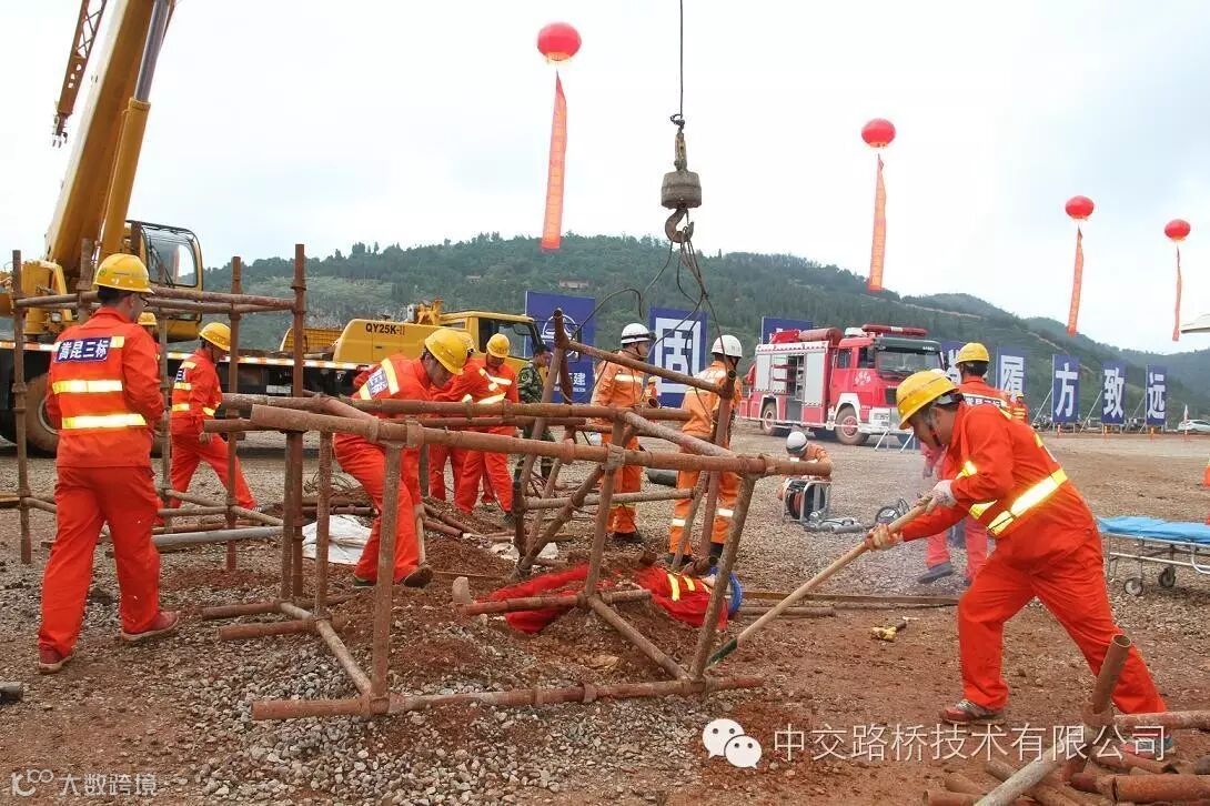 “匝道施工现场箱梁支架在预压过程中发生坍塌,有人员受伤和被困,请求紧急救援!”“请各救援小组迅速集结到位,全力开展应急救援工作。”……6月16日,由中国交建云南嵩昆高速公路项目路桥技术分部组织开展的现浇箱梁施工坍塌事故应急救援演练正在紧张进行中。