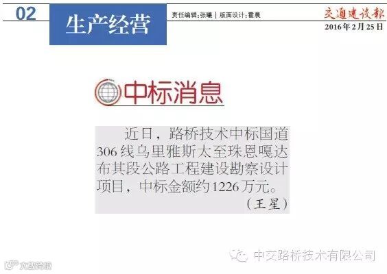 2月25日,第319期《交通建设报》出版,其中头版和二版分别刊登了公司的相关消息,小编截图如下: