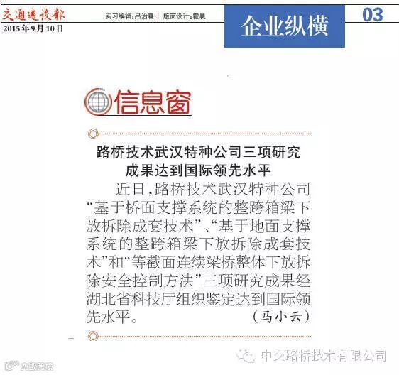 近日,中国交建网站、《交通建设报》连续刊登公司多篇稿件,小编特截图如下: