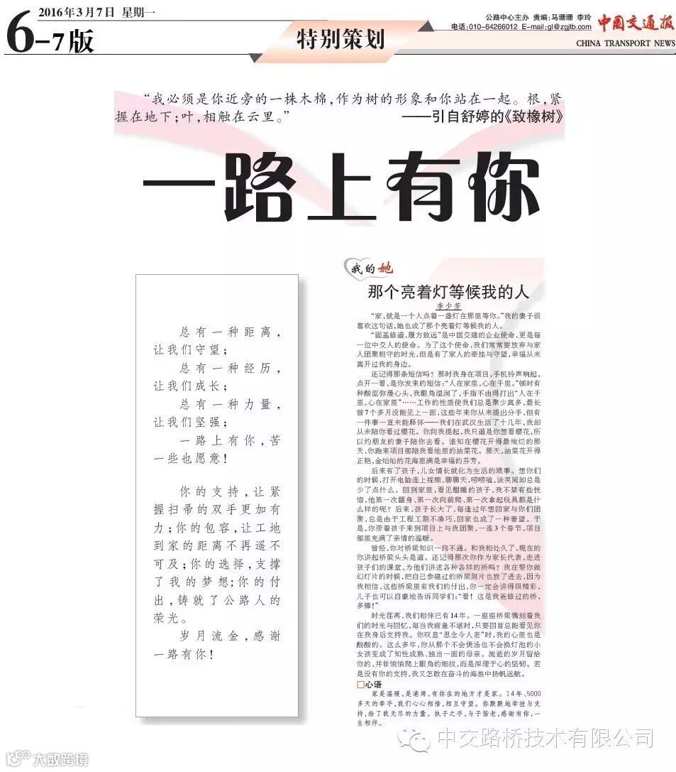 小编将故事投稿给《中国交通报》,其中《那个亮着灯等候我的人》于3月7日特别策划版被刊登。